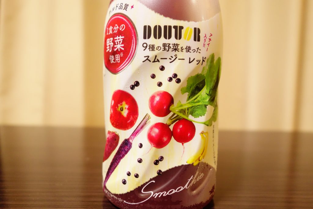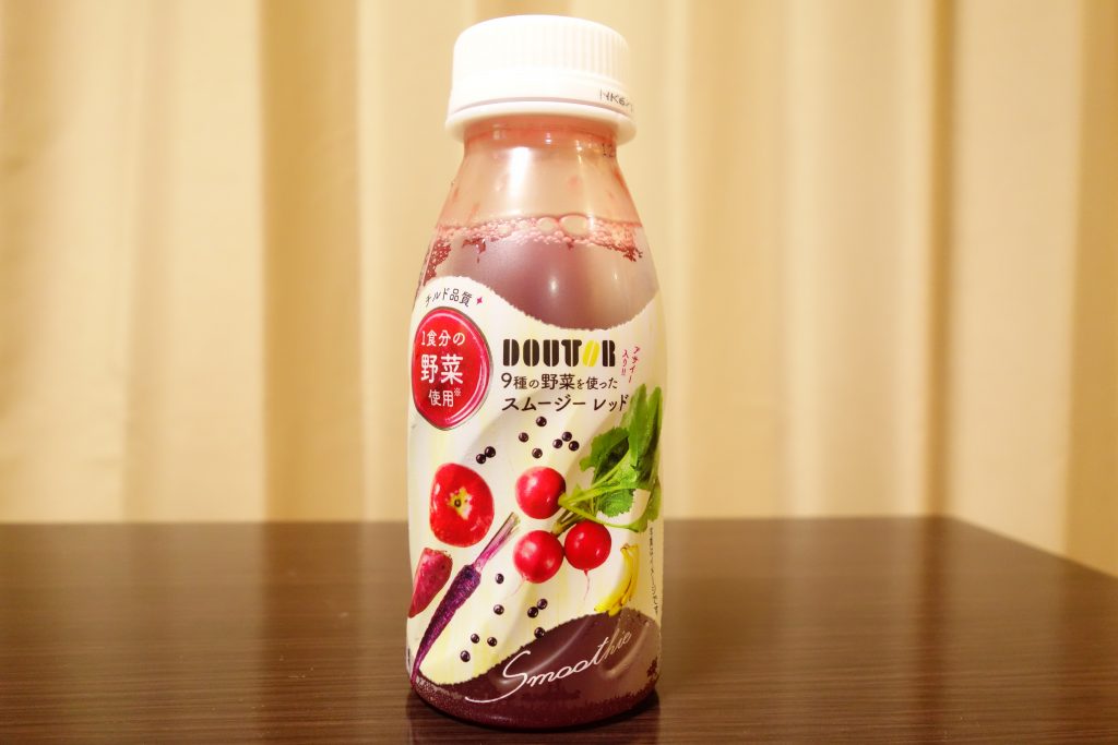 コンビニに行ってみると、ドトールのマークがついたスムージーが発売されていたので買ってみました(‘ω’)ノ濃厚なフルーツと野菜のsmoothyで健康的でとってもおいしい仕上がりになっていました(^^♪ 今回は全3種類あるうちの一つ、9種の野菜を使ったドトール スムージー レッドを飲んでみた感想です(^^♪)